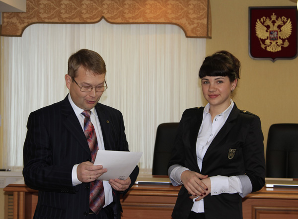 Ильин Г.П. вручил начальнику отдела делопроизводства Скрипник Ю.С.